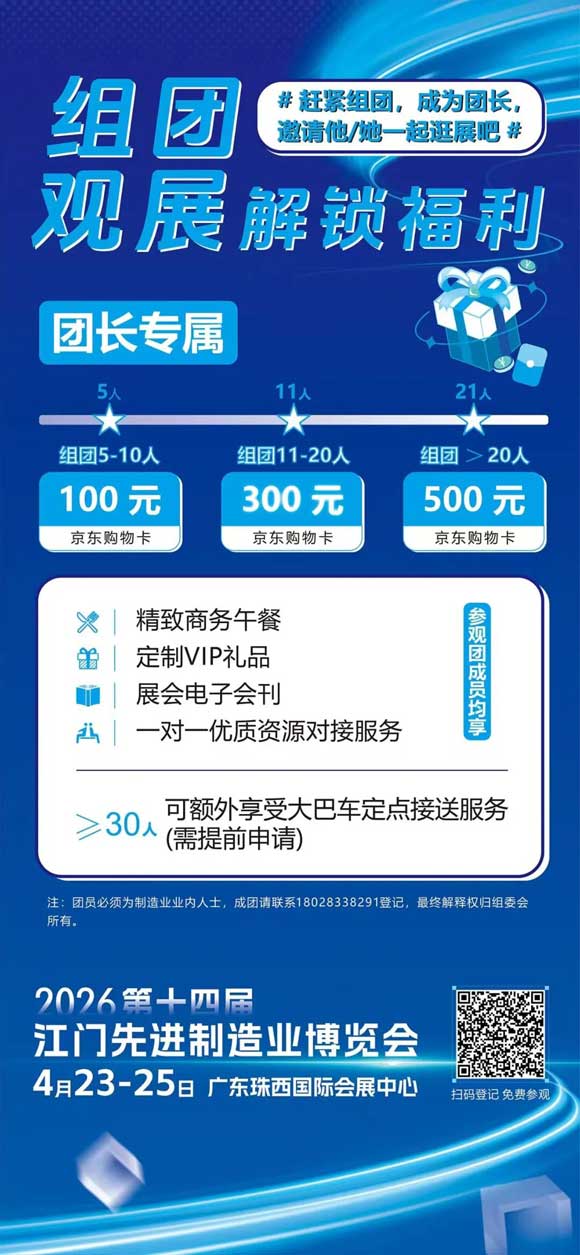本届江门制博会将集中呈现智能制造全产业链的先进装备、前沿技术与一站式解决方案,助力制造企业降本增效、优化供应链布局,加快数智化转型升级。展品覆盖机床模具、自动化及机器人、激光焊接及切割、智能装备、环保设备、新材料六大板块,面向五金卫浴、不锈钢制品、摩托车及零配件、家电制造、3C电子、新能源电池、精密加工等重点产业,提供定制化、一站式产业升级创新方案。